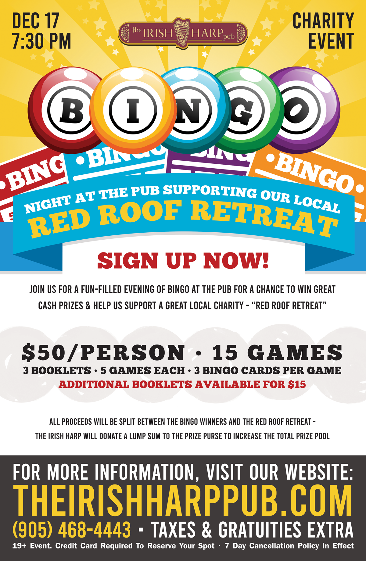 Join us for Bingo Night at The Pub and try your luck at some great cash prizes while helping to make a real difference in our community. To show our appreciation for your support, The Irish Harp Pub will contribute a lump sum donation to the prize purse to increase the total prize pool.