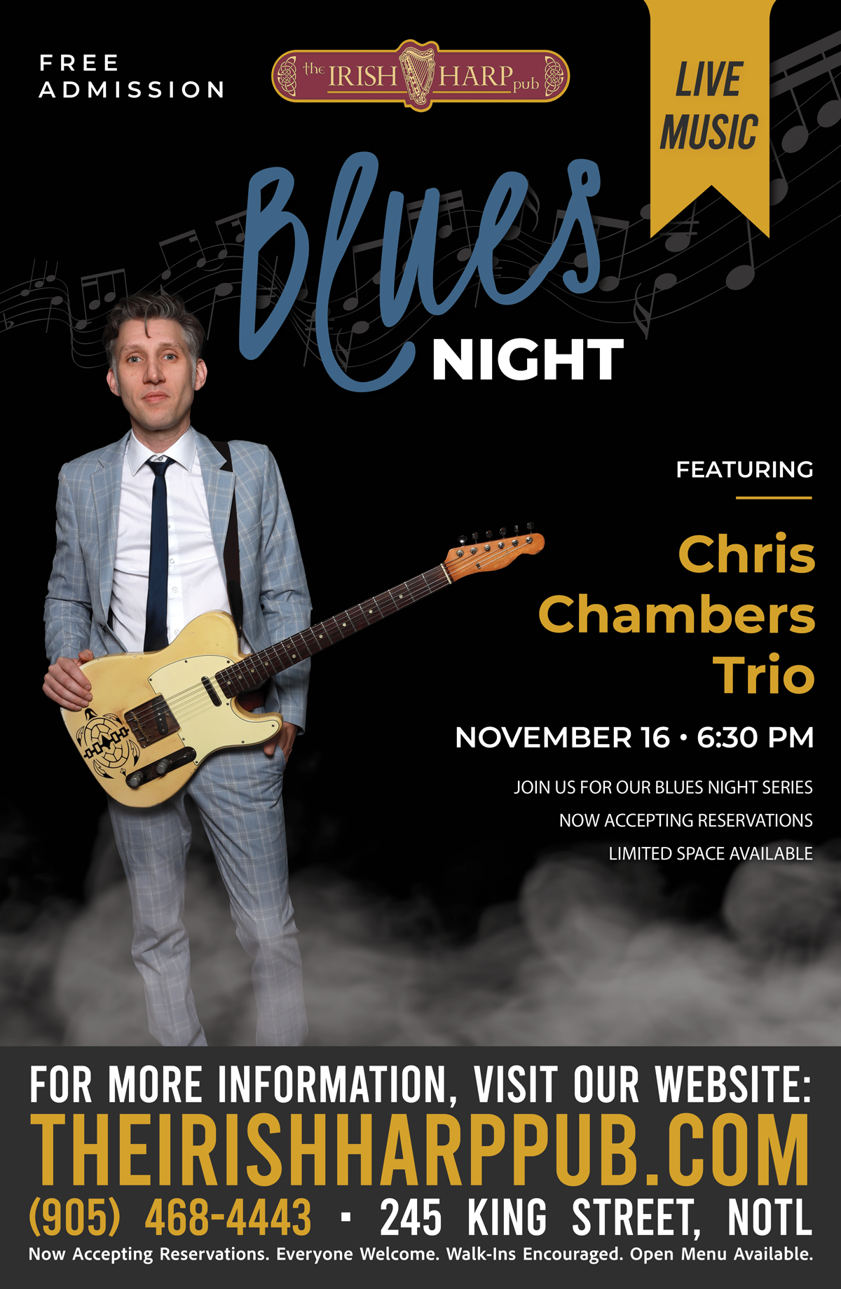 Featuring The Chris Chambers Band, a powerhouse ensemble led by the masterful guitarist, singer, and songwriter who’s shared stages with legends like David Wilcox, and worked alongside producers who’ve shaped icons such as Deep Purple and Pink Floyd—delivering fiery riffs, raw emotion, and precise blends of soulful blues with electrifying roots music.