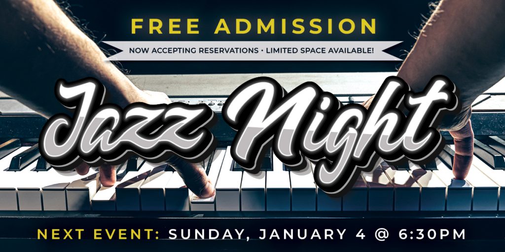 We have partnered with some great local & nationally recognized Jazz Musicians to bring you our Sunday Evening Jazz Series. Experience an upscale & refined sound as these performers travel through time and explore their roots while bringing you some of the best Jazz this region has to offer.