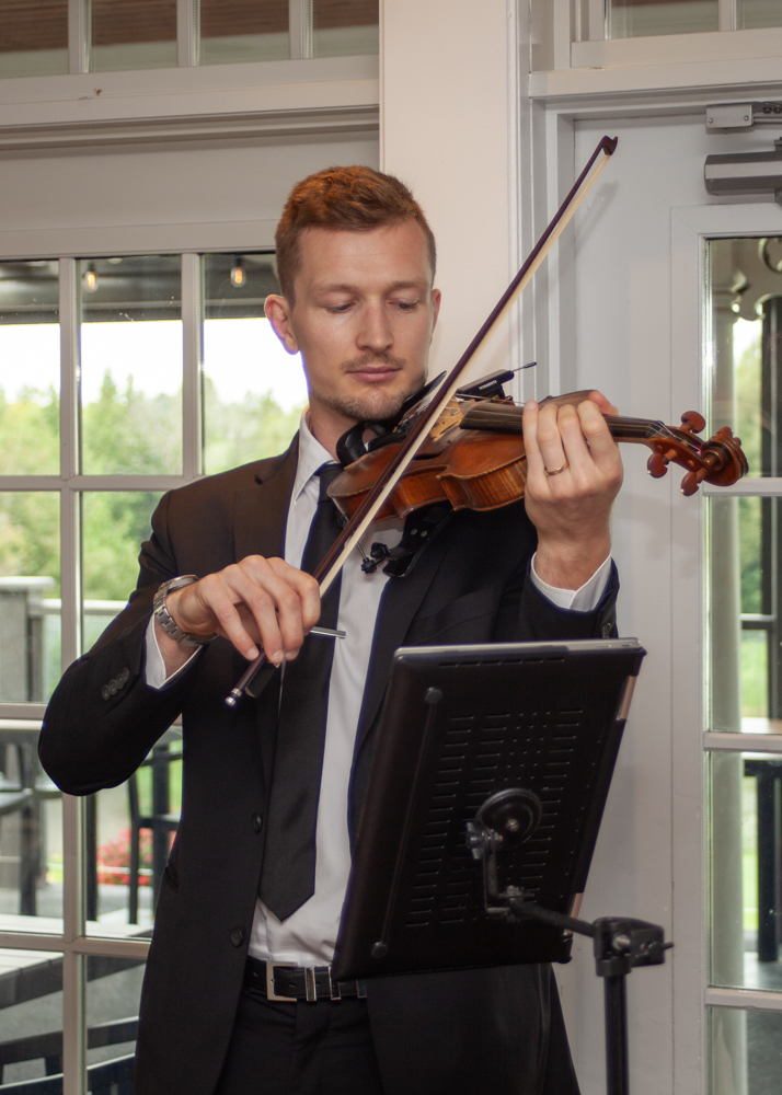 Originally with a background in fiddle music, classical violin, followed by classical viola, Liam now mainly performs pop/classic rock/hip hop music on acoustic and electric violin with backing tracks. He resides in St. Catharines where he maintains a large home teaching studio and a busy schedule performing as part of his violin + piano duo, The Fox Duo.