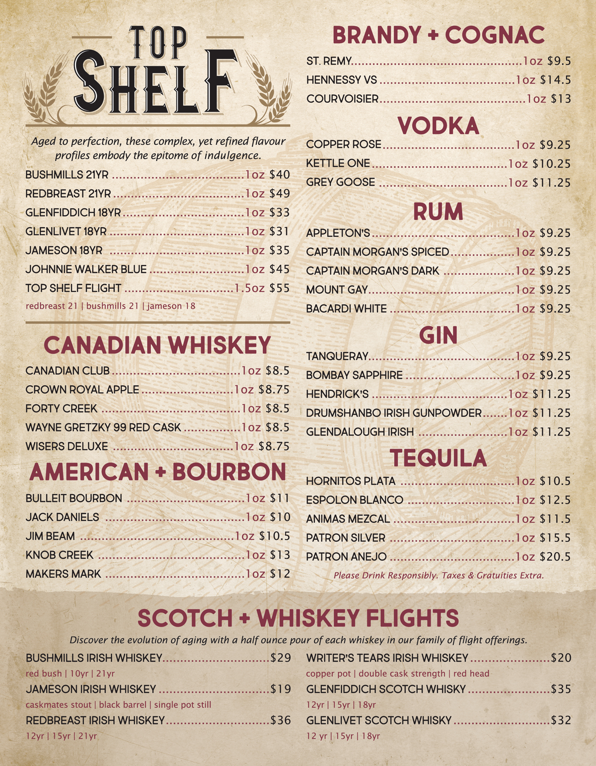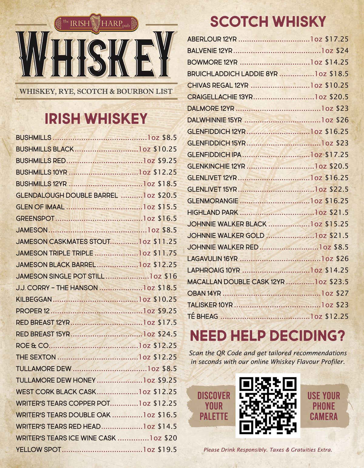 NOTE: Prices displayed are for 1oz of whiskey